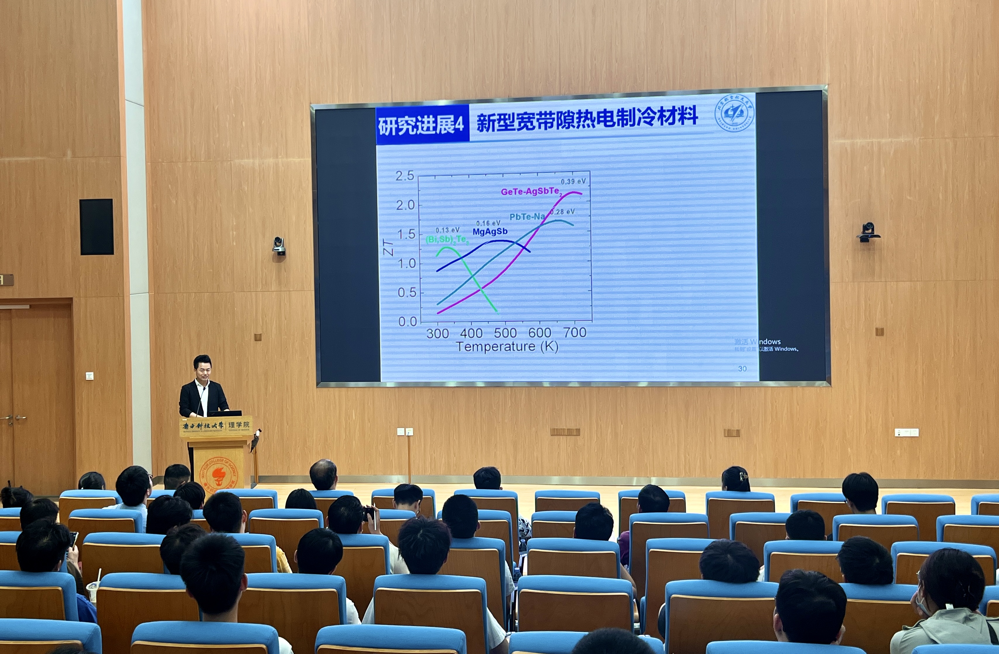 随后,赵立东教授详细介绍了他从发现SnSe单晶材料的高温热电性能,到逐步的对该材料深层次的能带结构和本征低热导率进行深入研究,针对该材料的特殊能带结构展开了多能谷简并,2D声子-3D电子和晶格素化等策略实现了SnSe基单晶材料在工作温度范围内平均ZT值的优化;同时,显著提高的平均ZT值也使SnSe单晶材料在制冷方面表现优异。此外,赵立东教授介绍了通过优化材料迁移率在多种类型的材料中实现了低温性能的优化,甚至是一些传统的中温区热电材料也在近室温附近展现了优异的制冷效率,例如PbTe,PbSe,PbS,SnS等。最后,他介绍了热电材料在国防、医工、催化、磁电、光电、遥感等领域的联合应用,为热电的未来应用描绘了蓝图。