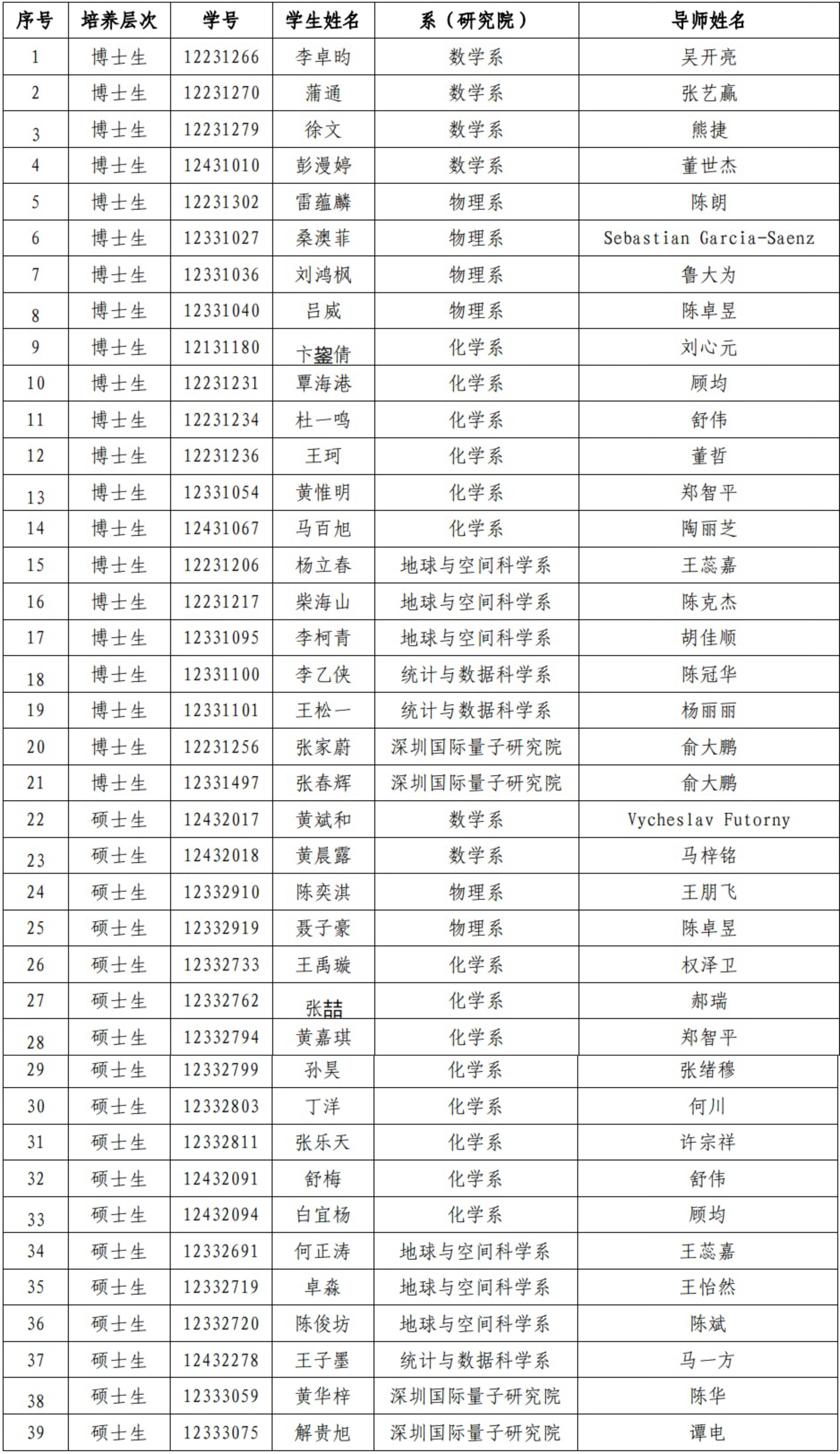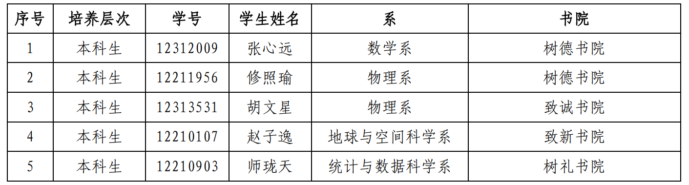 根据《南方科技大学关于2025年度国家奖学金评选的通知》和学院国家奖学金评审实施细则相关规定和要求,经学生个人申请、导师(辅导员)推荐、系(研究院)初评、学院评选,最终确定本科生国家奖学金候选人5名、硕士生国家奖学金候选人18名、博士生国家奖学金候选人21名,现将评选结果公示如下: